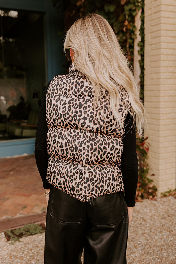 - Add some flair to your look with a leopard print puffy vest that's made for turning heads! This piece layers effortlessly, bringing a bold touch to your fall wardrobe essentials. Whether you're out for a casual stroll or embracing an urban vibe, this vest adds a hint of fierce style that keeps your outfit on-trend and chic.