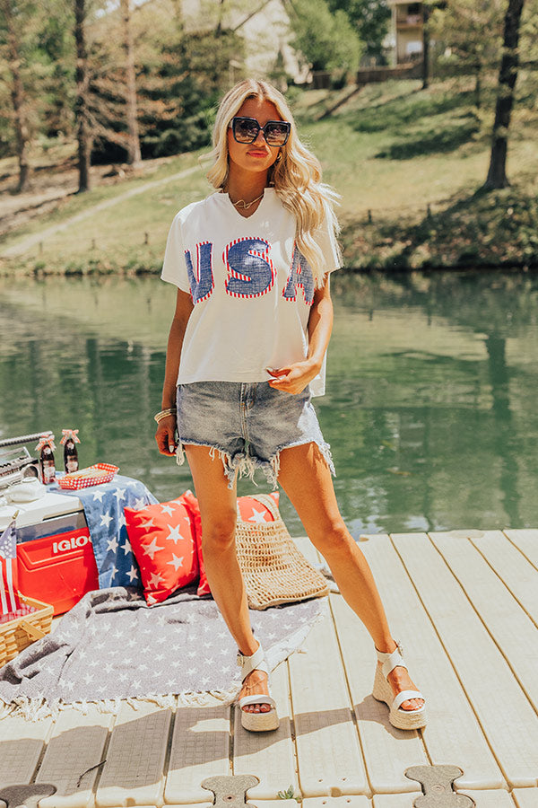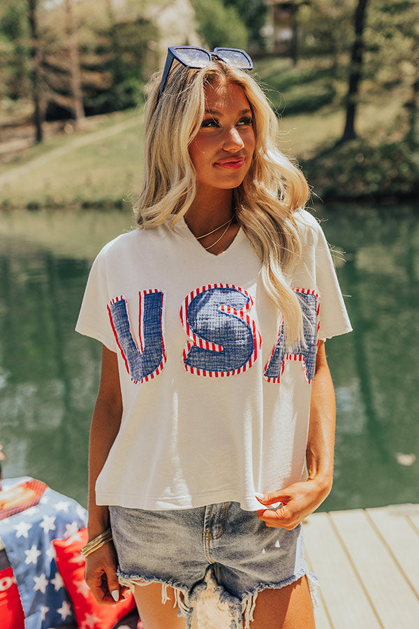- Celebrate under the stars with this trendy USA top!