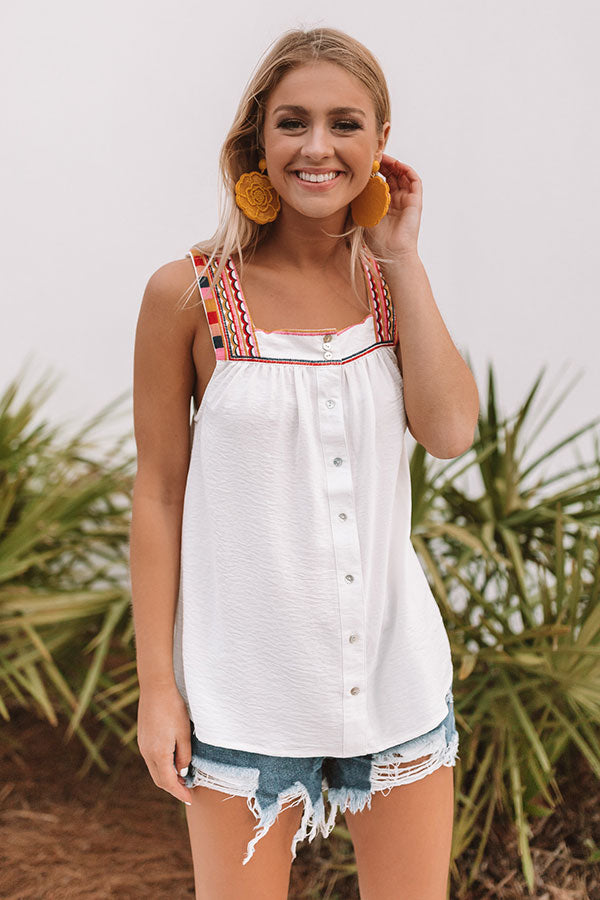 Vacay Goals Embroidered Shift Tank in White