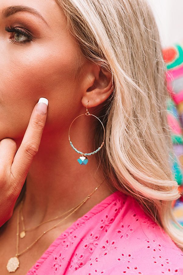 Add a subtle pop of color to your OOTD by accessorizing with our adorable "Vacay Guru" statement earrings featuring dainty gold hoops with blue bead accents and dangling blue charms!