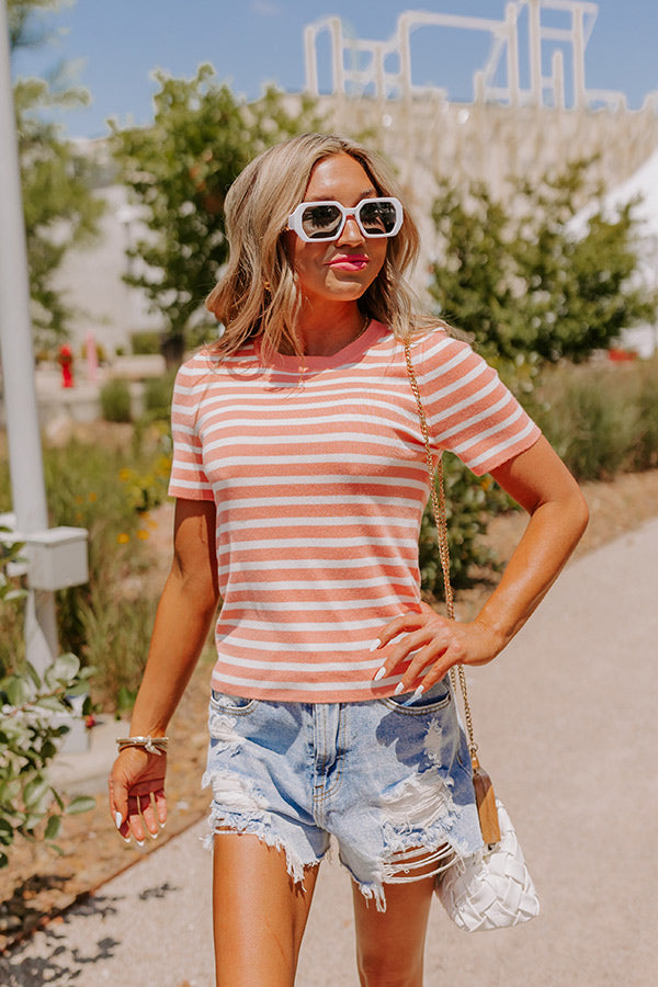 Vacay Mode Stripe Top in Light Coral