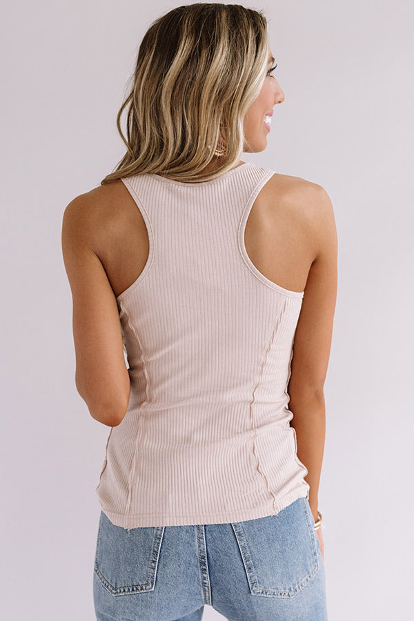 Our iced latte colored "Vacay Views" tank is the upgrade your wardrobe basics have been begging for! It features lightweight stretchy material with ribbed texturing, a button up bodice with a scooped neckline, 1-inch straps, and a form fitting silhouette that falls into a straight hemline! The simplicity of this top gives you the versatility to explore a wide variety of styling options, like solo with some distressed skinnies, a chic backpack, and trendy sneakers, or you can wear it layered under a neutral hued cardigan with some black flares and "The Seraphina Faux Leather Wedge in Taupe!" Measurements
