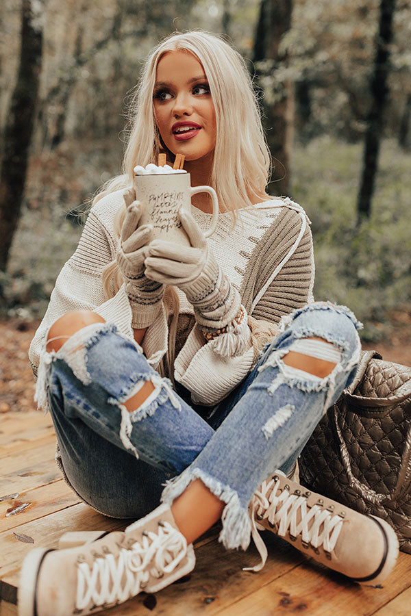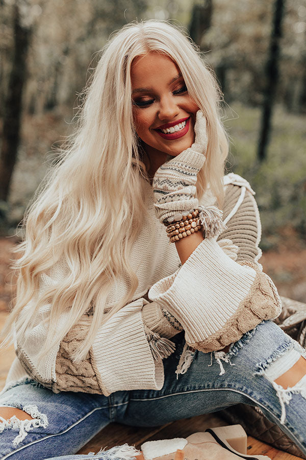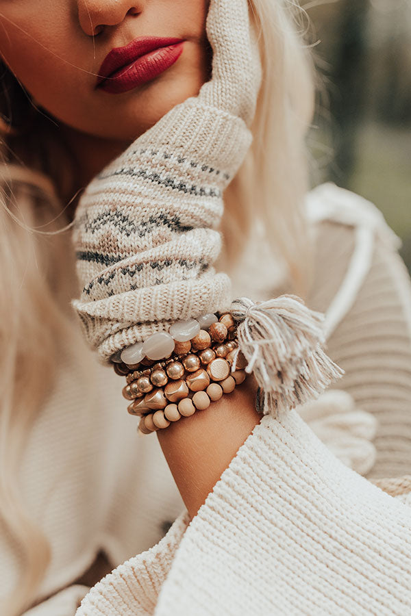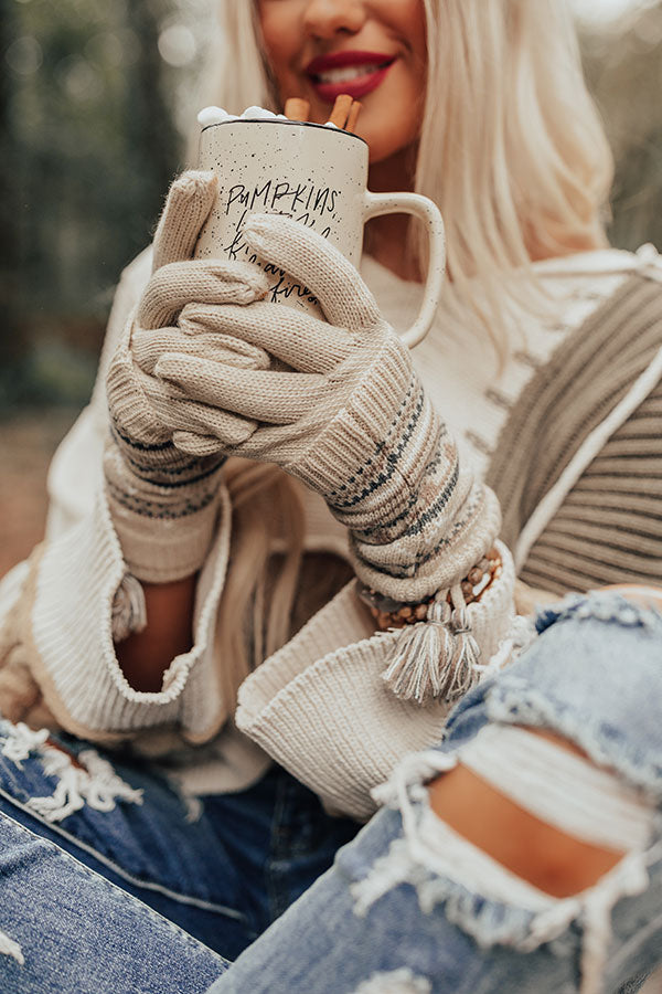 There is no reason you can't stay stylish and warm on your "Vail ski trip" when you wear these adorable beige colored loves featuring soft lightweight tight knit material patterned with a unique aztec print and a lightweight full finger silhouette!