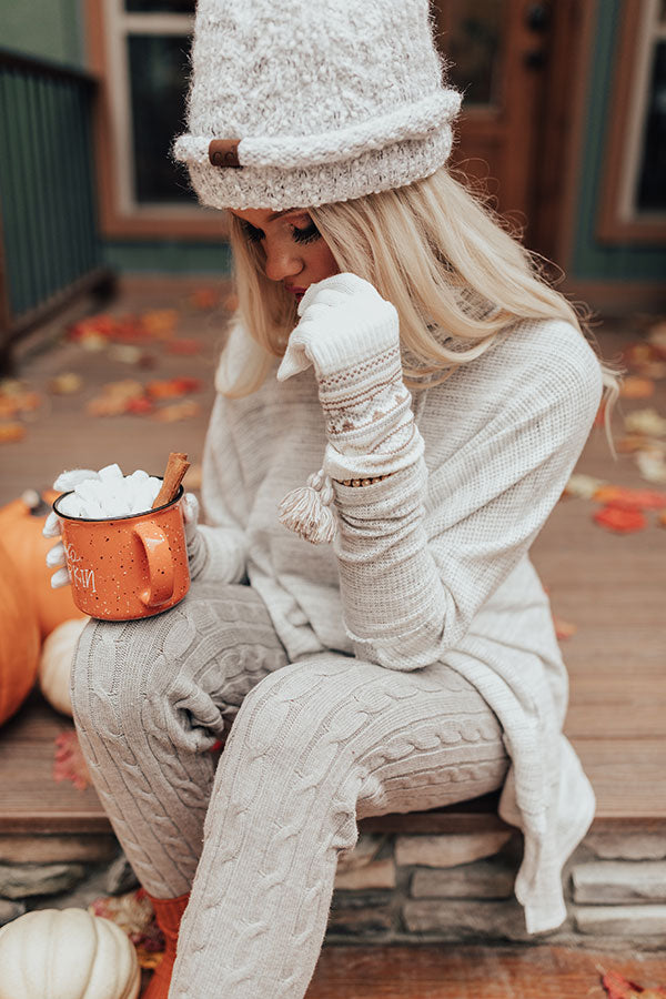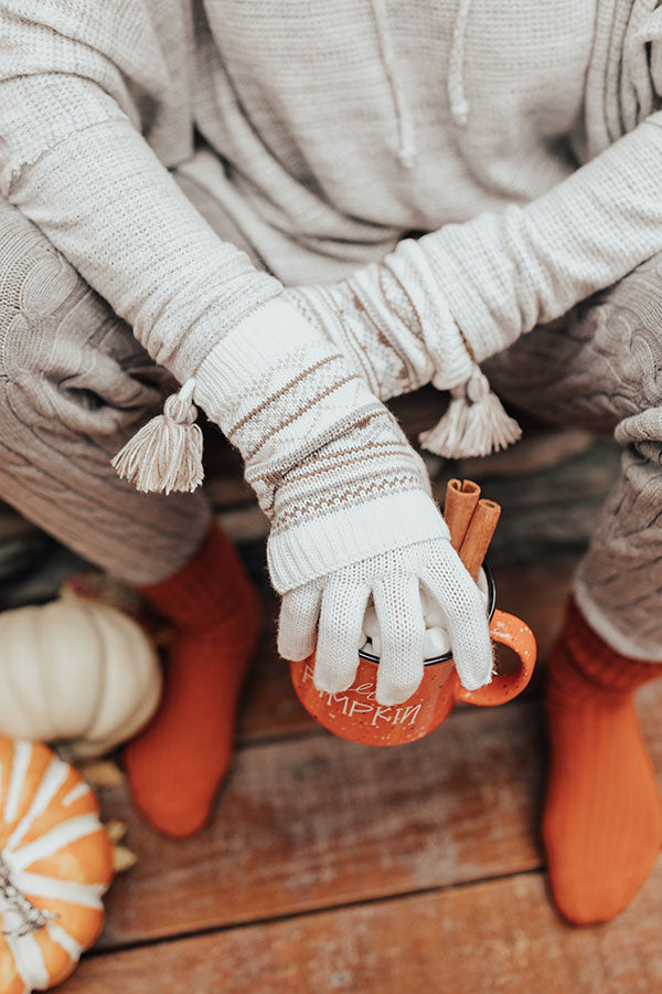 There is no reason you can't stay stylish and warm on your "Vail ski trip" when you wear these adorable ivory colored gloves featuring soft lightweight tight knit material patterned with a unique aztec print and a lightweight full finger silhouette!