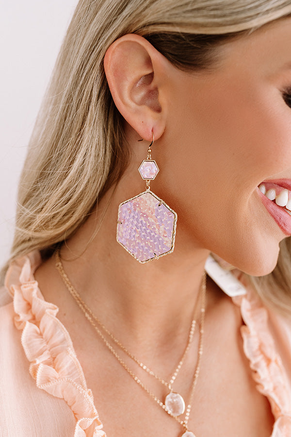 Strike a pose in our daring "Vegas Suite" statement earrings featuring a small and large dangling blush colored snake print hexagon shaped pendants!