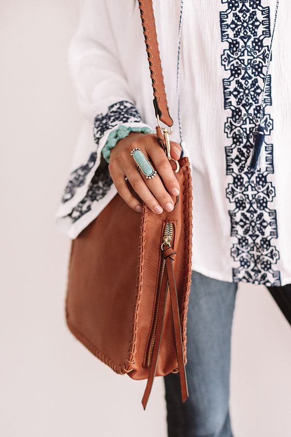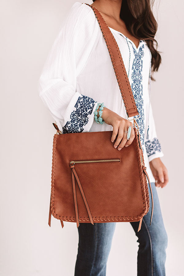 When headed for your "Vegas weekend" don't forget to pack this maple faux leather crossbody to carry all your night out essentials! It features a wide strap, oversized seams, zippered pouches, and fringe accents that are sure to upgrade any look!