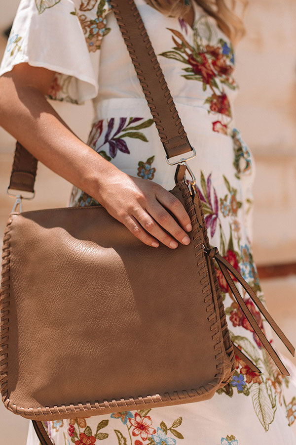 Vegas Weekend Faux Leather Crossbody In Mocha