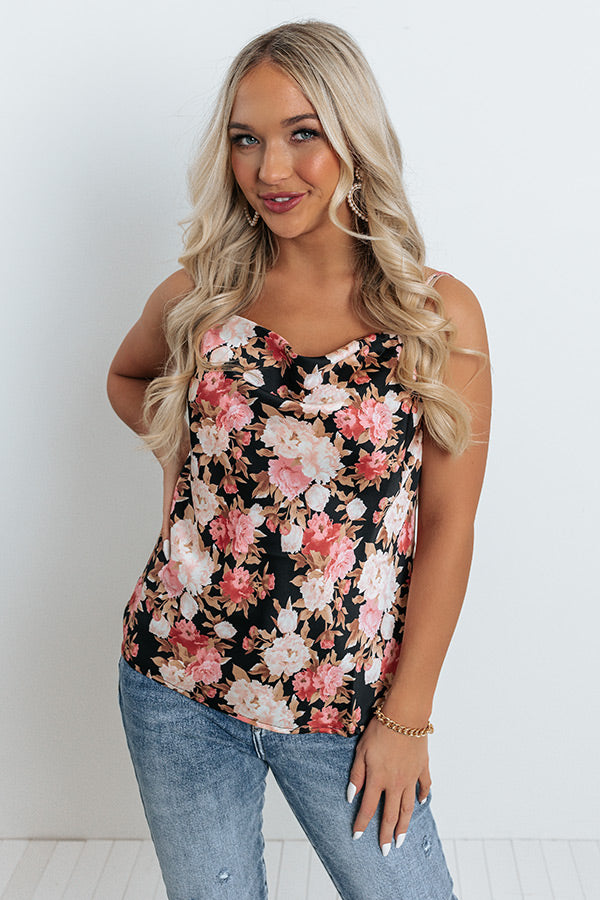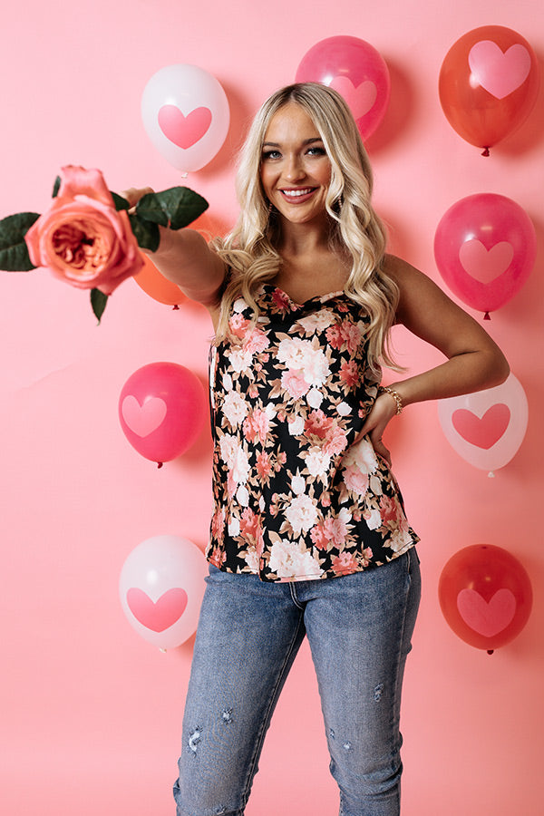 Keep your Valentine's date night look effortless with our charming black 'Venice Love' shift tank featuring lightweight material patterned with a light pink and dark blush hued floral print, a scooped neckline, adjustable spaghetti straps, and a relaxed silhouette that falls into a straight hemline!
