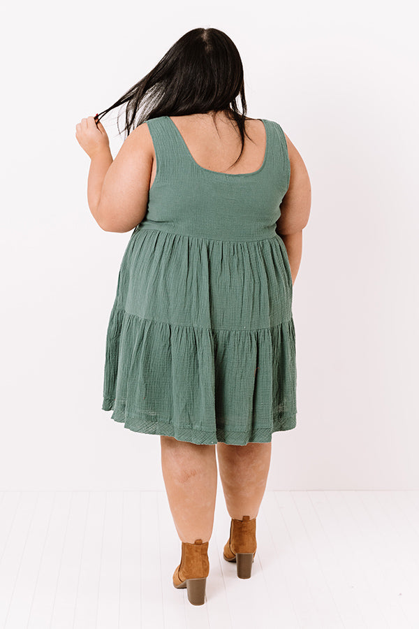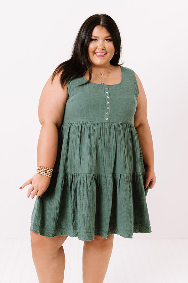 Plus Size - Our stunning green "Vermont Views" dress features lightweight material, a button up bodice with a scooped neckline and upper back, wide 3-inch sleeveless shoulder straps, and a relaxed tiered babydoll silhouette that falls into an uneven mid-thigh length hemline!