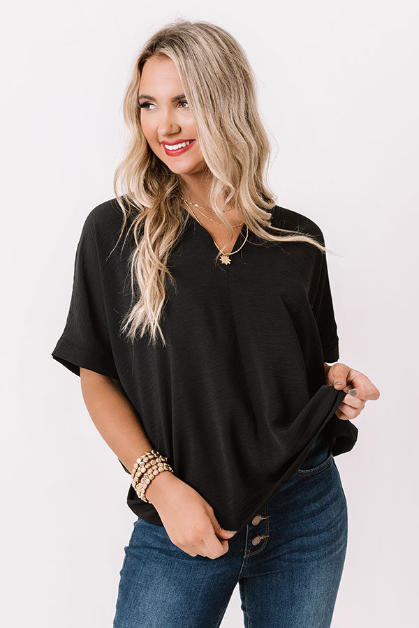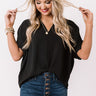 Whether you are looking for a piece to layer or wear solo, our versatile black "Versailles Celebration Shift Top" is perfect for it all with its lightweight flowy material, v-cut neckline, short loose sleeves, and ultra draped silhouette that cascades into a straight hemline! Measurements