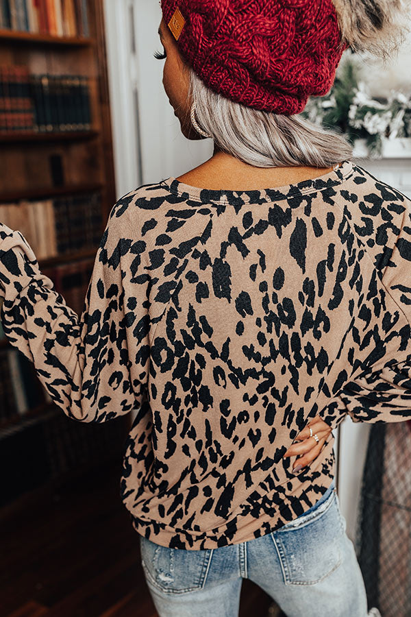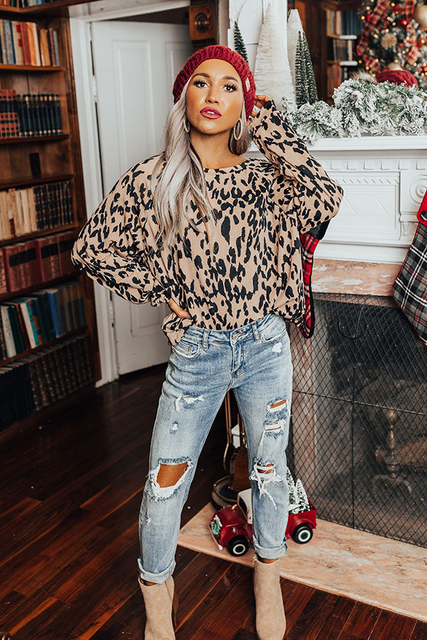 You are sure to feel very confident when you complete your look with this adorable iced latte hued top featuring lightweight material patterned with a black leopard print, a rounded neckline, long loose sleeves, and a slouched silhouette that falls into a straight hemline! Measurements