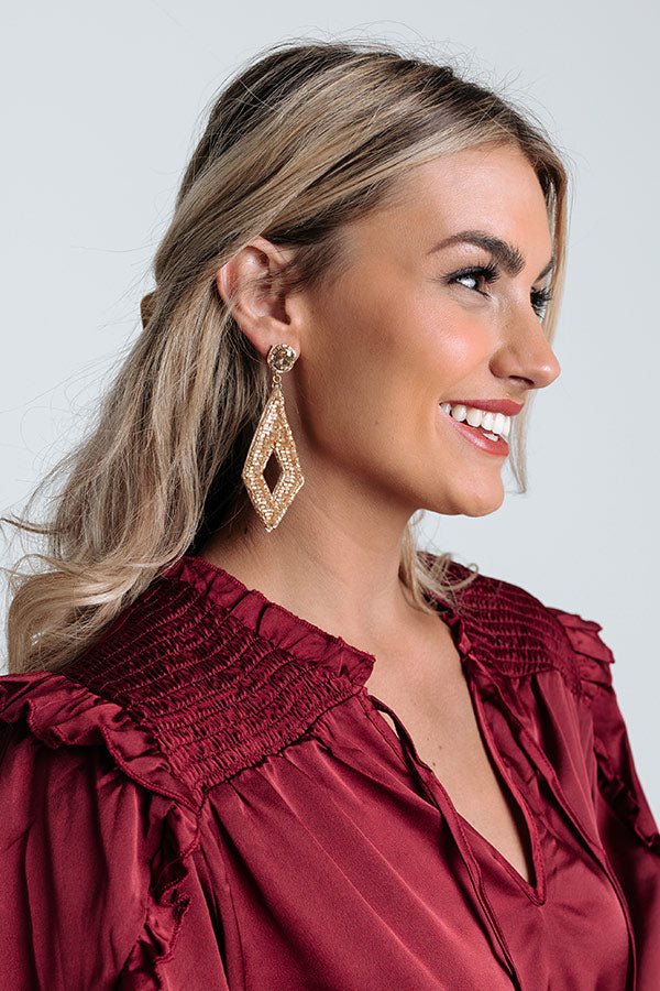 Life's vibrant, so accessorize like it with these stunning earrings featuring dangling gold beaded diamond shaped hoops!
