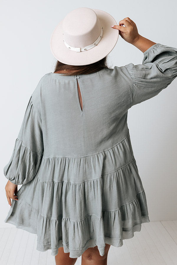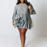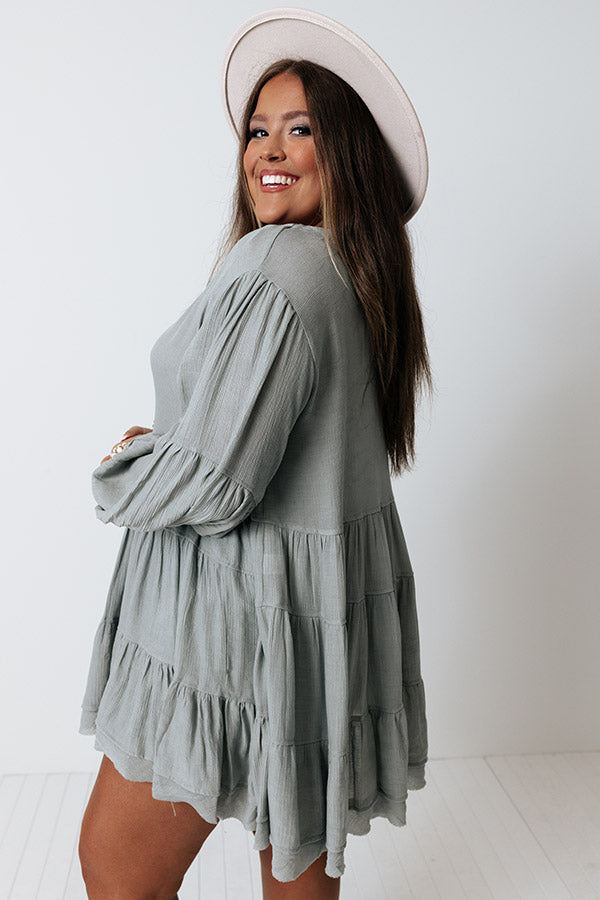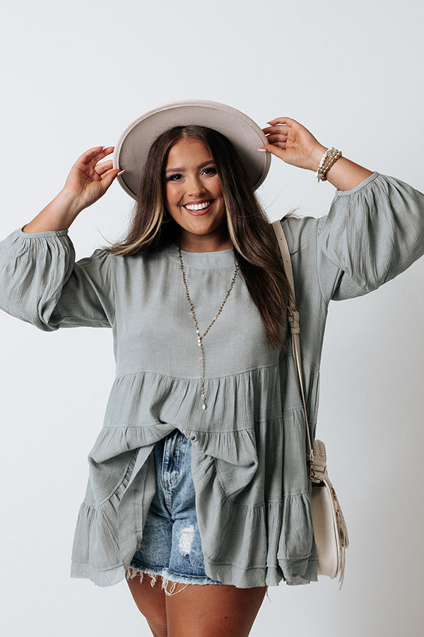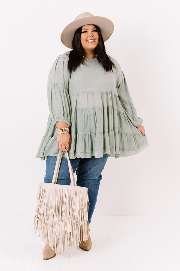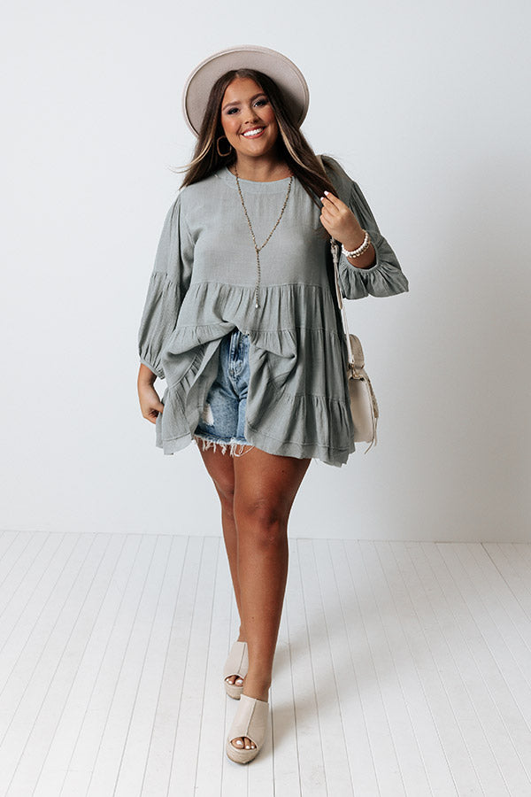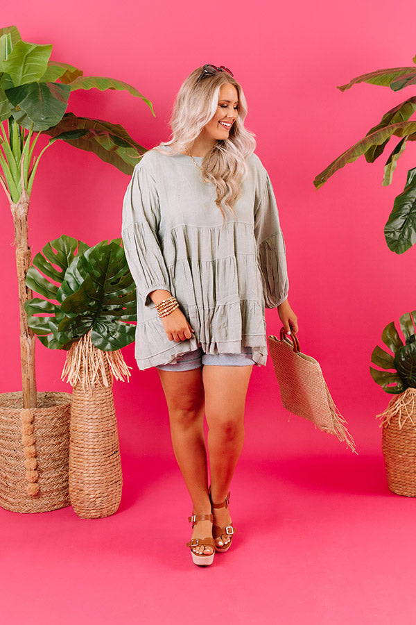 Plus Size - Await the autumn season in style with our adorable pear hued 'Vineyard Season' top featuring lightweight material, a high rounded neckline, oversized 3/4-length bubble sleeves with elastic cuffs, a keyhole accented upper back with a button closure, and an ultra relaxed babydoll silhouette that falls into an uneven tunic-length hemline! Measurements