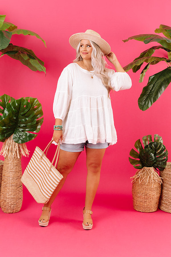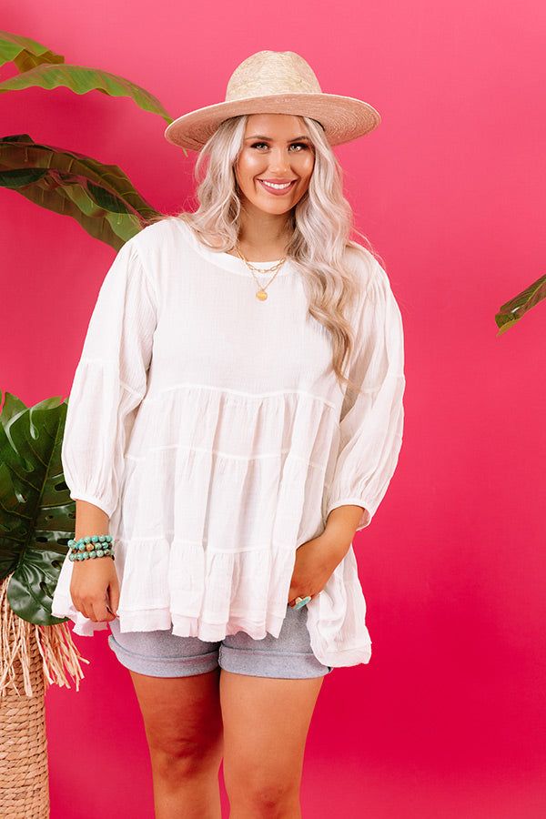 Vineyard Season Babydoll Top In White Curves