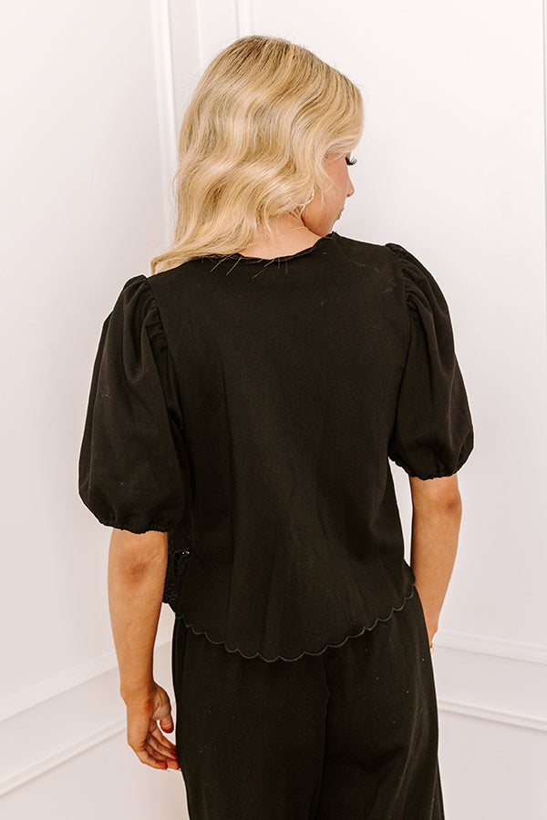 Vineyard Villa Embroidered Front Tie Top in Black