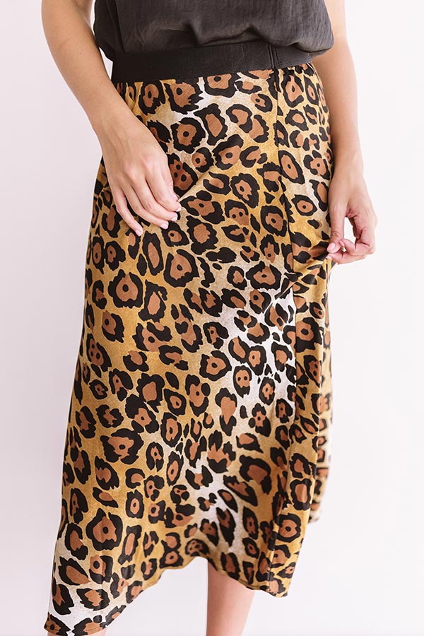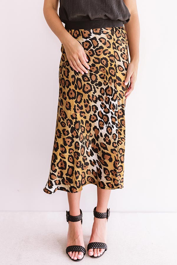There is not better piece to wear when visiting the vineyards than this chic skirt featuring a daring leopard print, a wide elastic waistband, a straight fit silhouette, silky lightweight material, and a mid-calf length hemline! This adventurous piece can be styled with a basic black tank and black heels, or you can pair it with our white "Girl Power Shift Tee" and red accents like "The Dailey Faux Suede Bootie" and our "Living The Dream Hat" for an edgy but casual OOTD that is sure to turn heads! Measurements