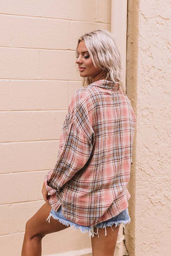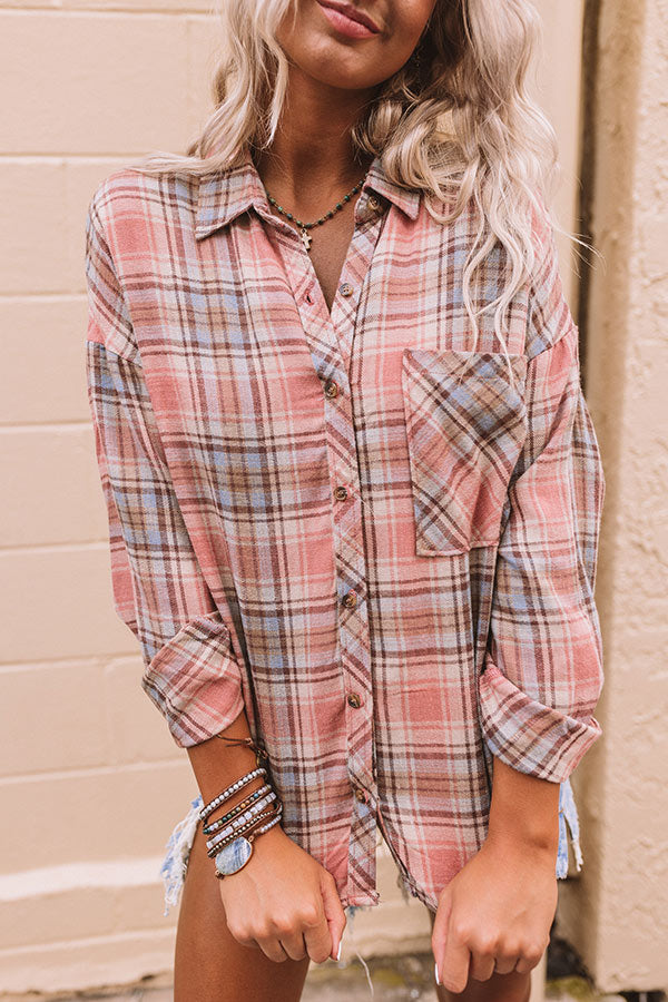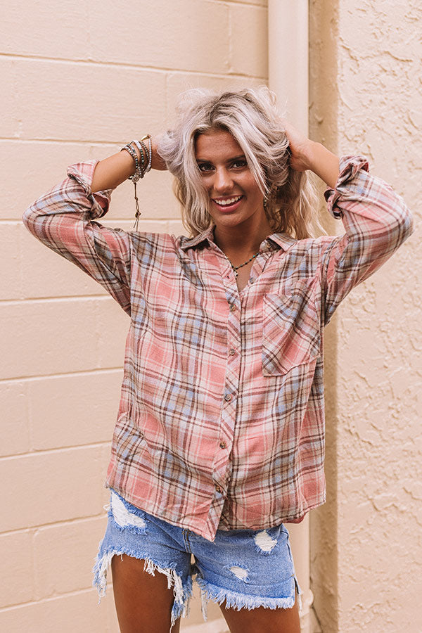 The weather is about to change, which means it's about time to switch out your seasonal wardrobe! This adorable top features soft lightweight material patterned with a light red, blue, and black hued flannel print, a button down front with a collared neckline, long loose sleeves with button closure cuffs, a single accent chest pocket, and a slouched silhouette that ends in a straight hemline! Measurements