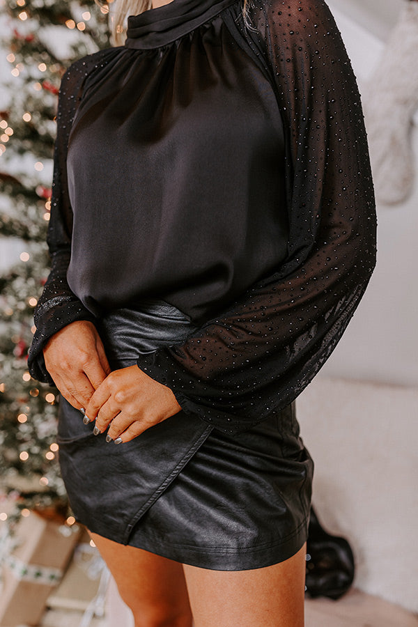 - Long, sheer sleeves with rhinestone embellishment and elastic cuffs