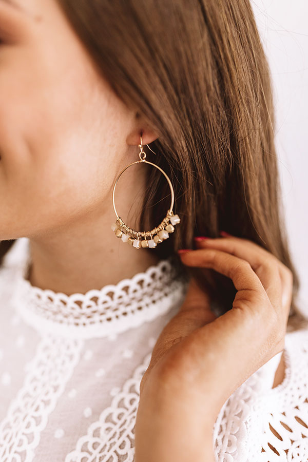 You will undoubtedly be on the VIP list when you wear these golden earrings featuring skinny hoops decorated with square gold and crystal charms!
