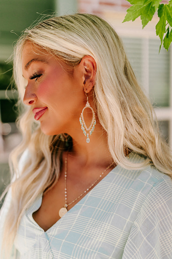 - Beaded drop style earrings with dangling shimmering beads and gold accents