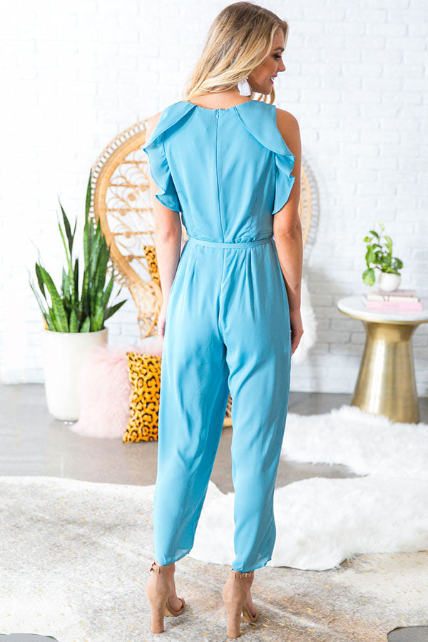 Always look your best in this sophisticated sweetie! This chic jumpsuit has a surplice bodice, flirty flutter sleeve, a sash belted waistline & a slim tapered pant leg with an ankle-length hem. Style this beauty with a nude strappy heel & a gold earring for a perfectly polished look everyone will be raving about!