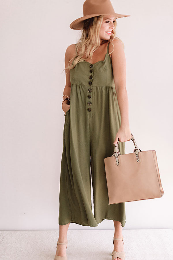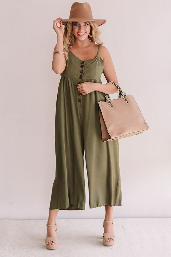 We have no doubt you will receive a "VIP ticket" when you show up in this mustard jumpsuit featuring a v-neck, adjustable spaghetti straps, extra flowy pants, and a button down bodice! You can dress this cutie up when you style it with a neutral platform heel, tote, and faux suede hat, but to dress it down, you can pair it with "The Ella Leopard Sandal" and "Gossip To Me Leopard Earrings" for a superstar outfit! Measurements