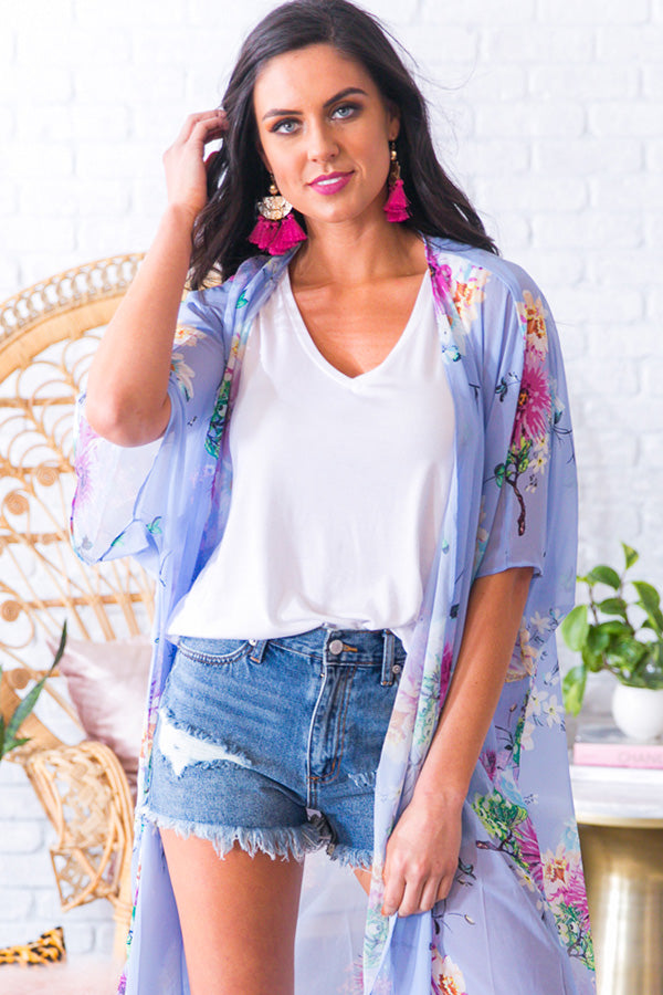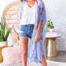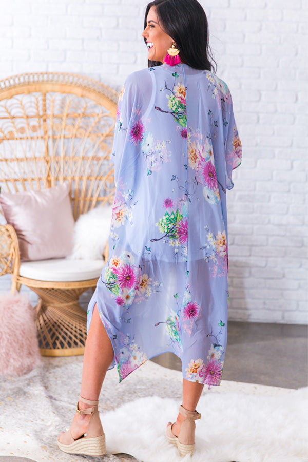 Go with the flow in this fabulous floral overlay! This breezy maxi overlay has short sleeves, a relaxed chiffon silhouette with optional sash belt & a long flowy high-low bottom hem with split sides.