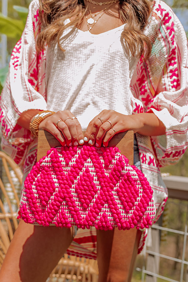 Vitamin Sea For Me Woven Clutch In Hot Pink