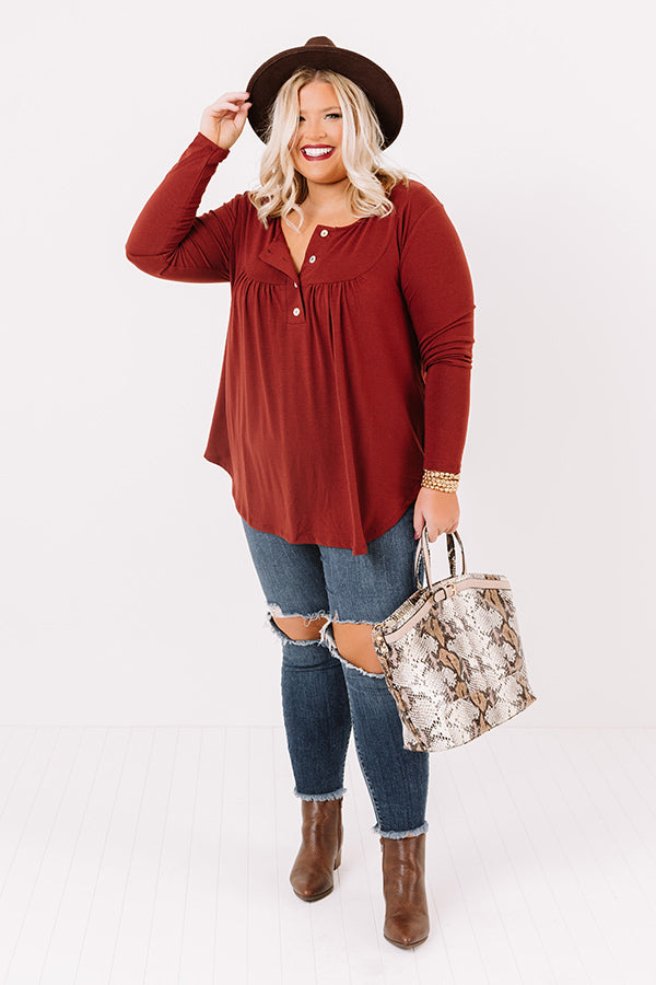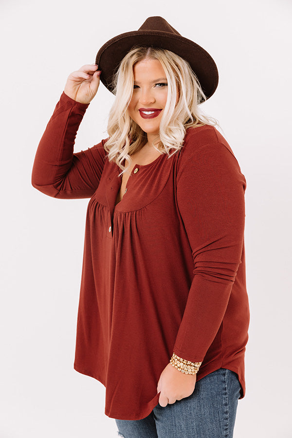 Vivid Autumn Shift Top In Dark Rust Curves