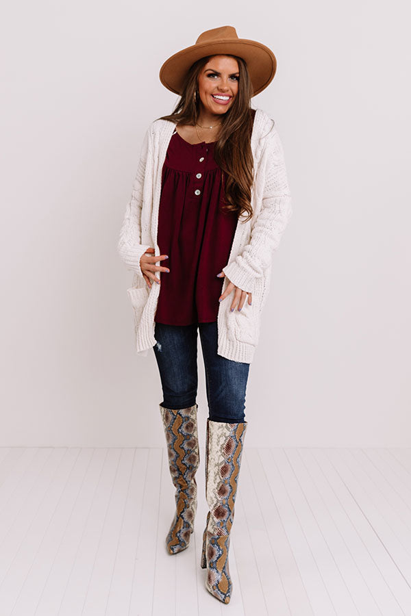 Embrace the fall season in our charming merlot colored "Vivid Autumn Shift Top" featuring lightweight flowy material, a button up bodice with a scooped neckline, long form fitting sleeves, and a draped silhouette that falls into a rounded tunic-length hemline! Measurements