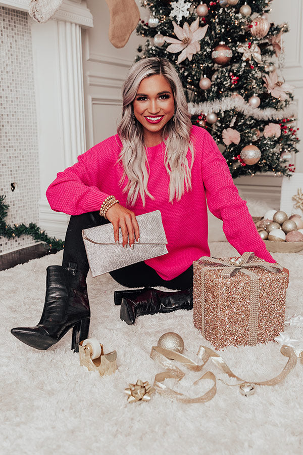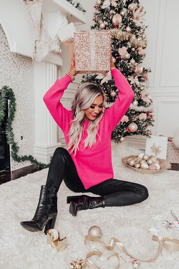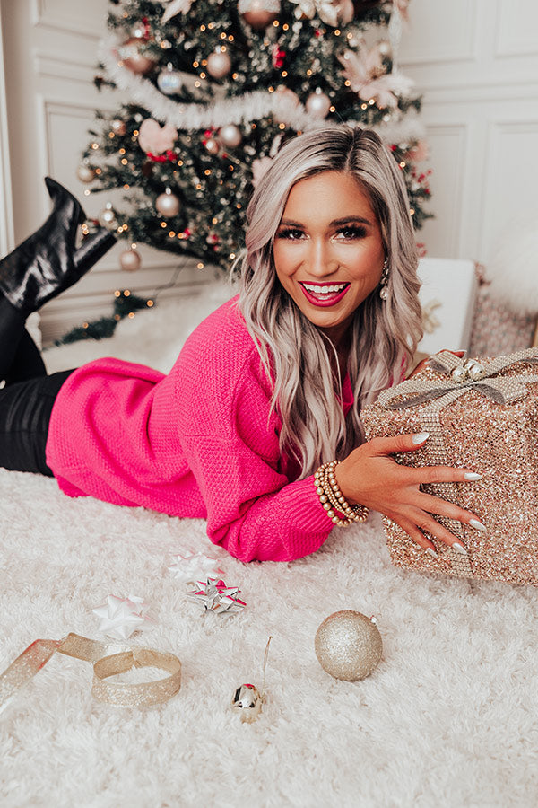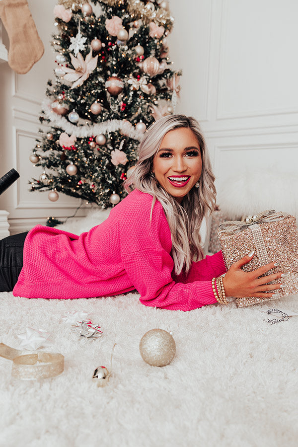 Waiting For Flurries Knit Sweater in Hot Pink