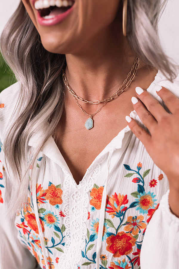 This adorable necklace is just waiting on you to add it to your cart! It features two layered gold link chains with a semi precious turquoise pendant!