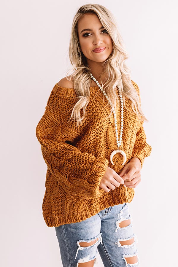 Wandering Through Winter Cable Knit Sweater In Pumpkin