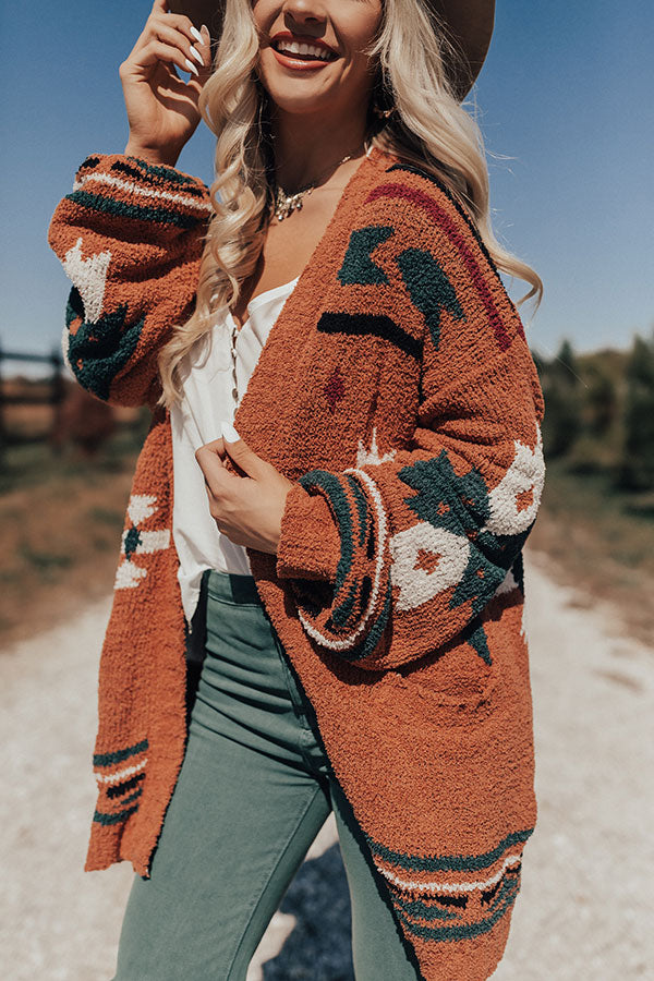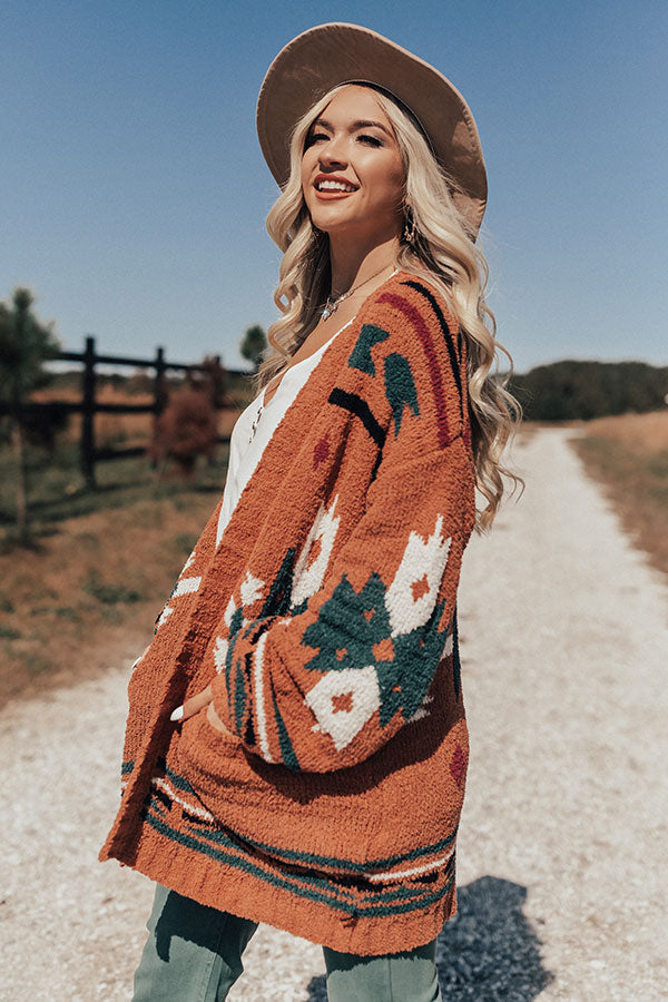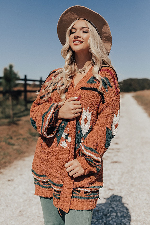Warm Fuzzy Feels Knit Cardigan In Rust