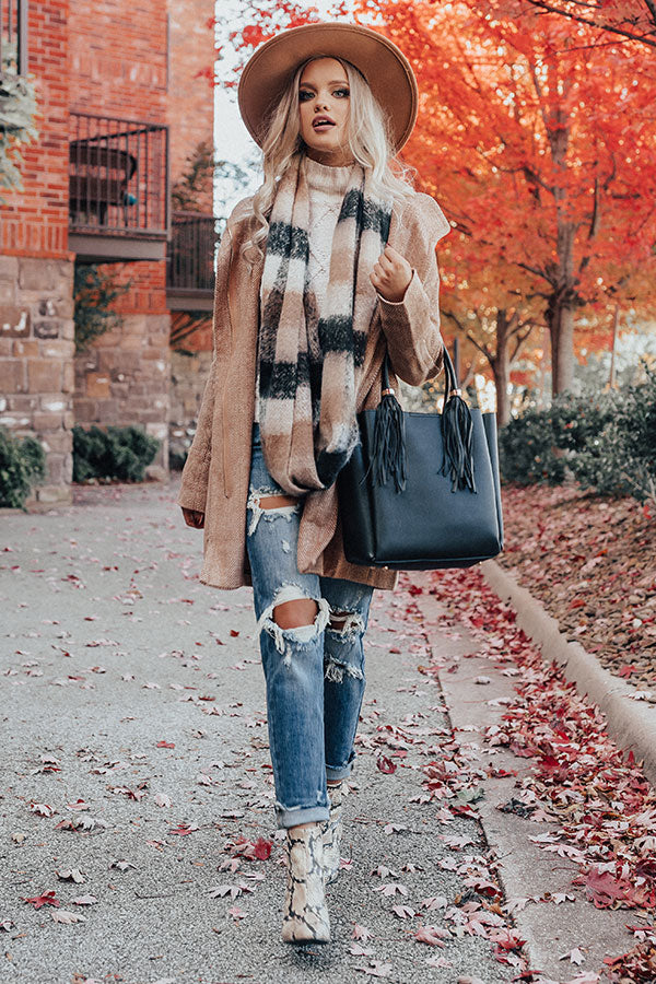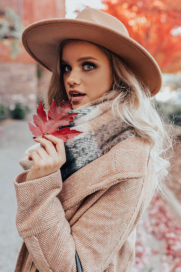 Add a "warm personality" to your OOTD with this adorable infinity scarf featuring soft lightweight tight knit material with a black and neutral plaid pattern!