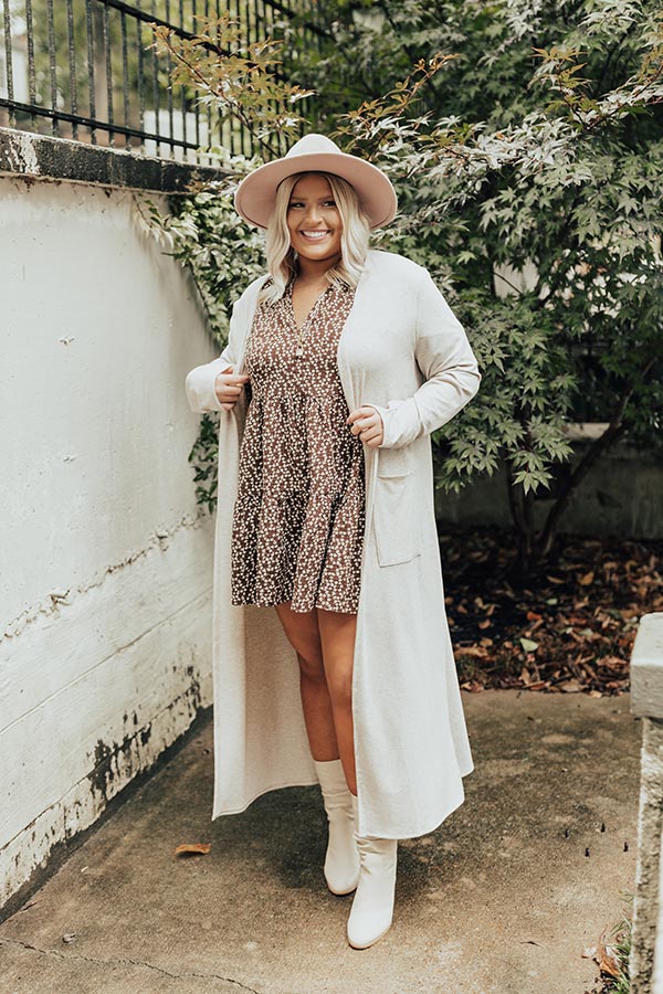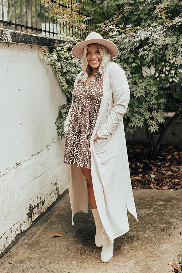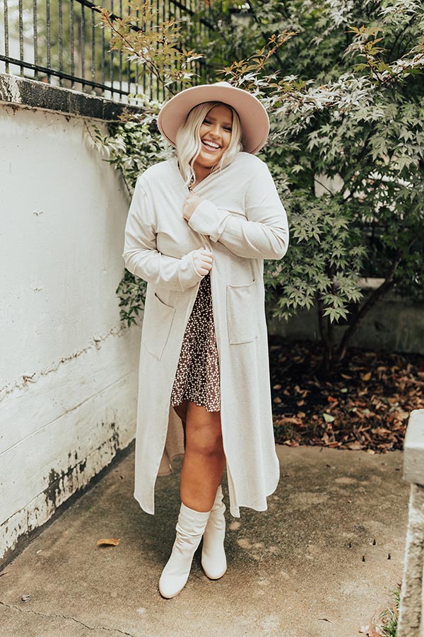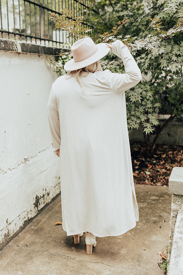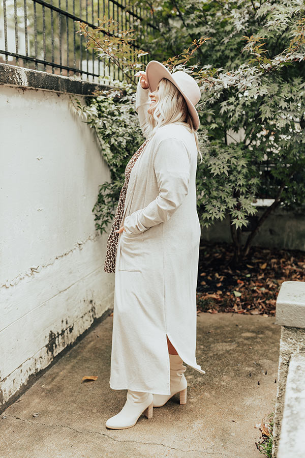 Keep warm with our this cute plus size birch colored duster cardigan featuring ultra lightweight breezy material, long loose sleeves, low pockets, and a draped open front silhouette that cascades into a straight ankle-length hemline with accent side slits! Measurements