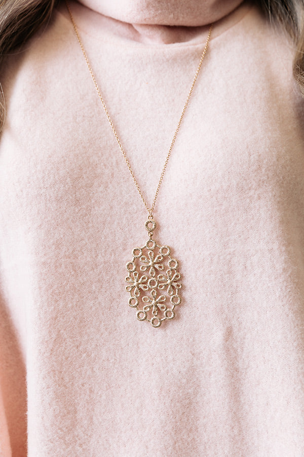This gorgeous necklace is sure to warm your soul with its long dainty chain and an intricate interlocked fold flower pendant!