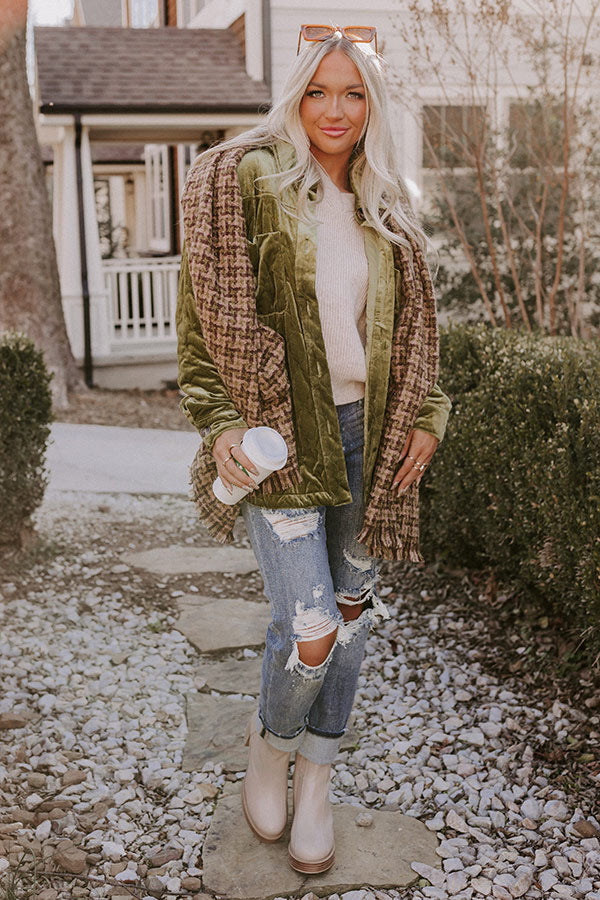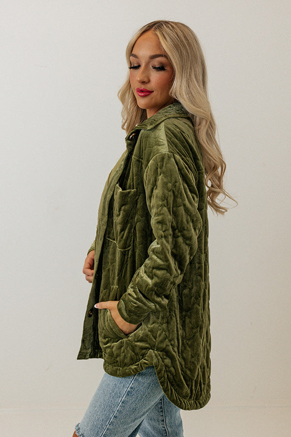 - Layer up in cozy quilted bliss in this beautiful luxe velvet jacket!