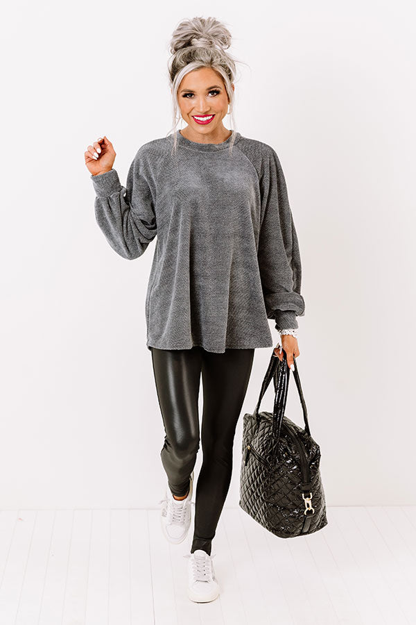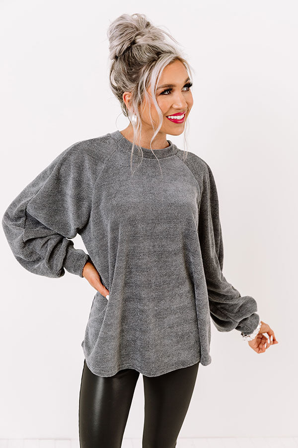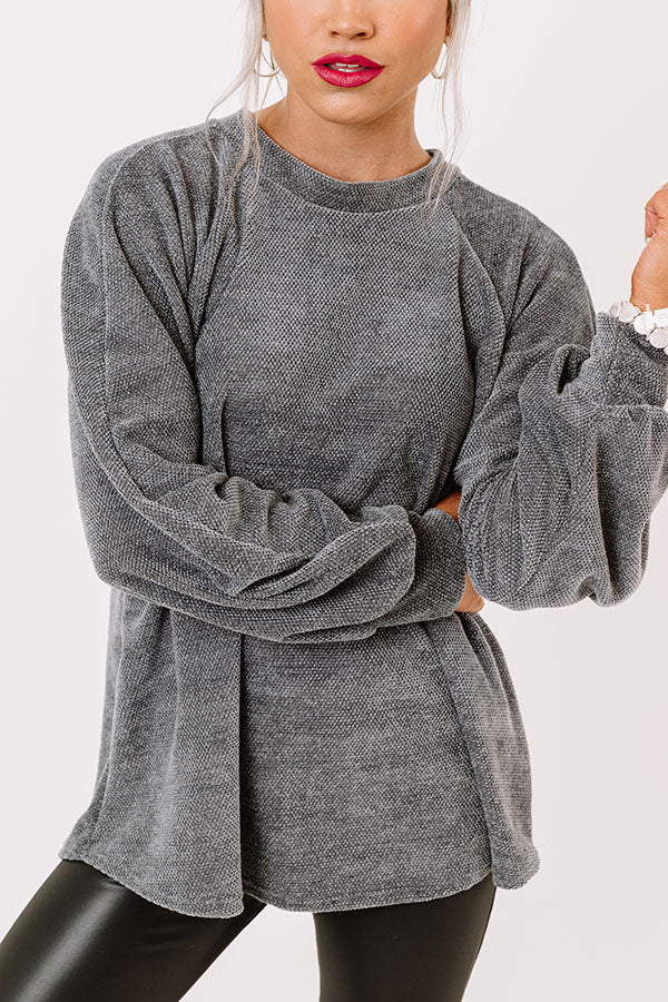 Warming Up Chenille Knit Sweatshirt in Grey