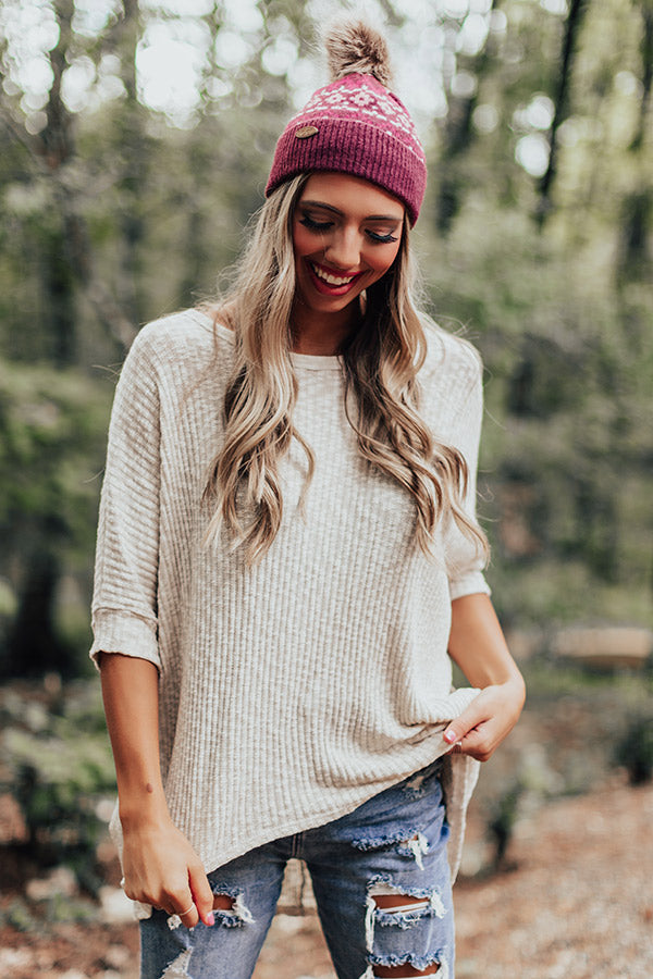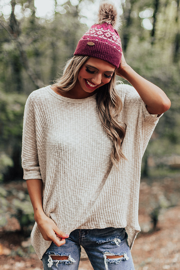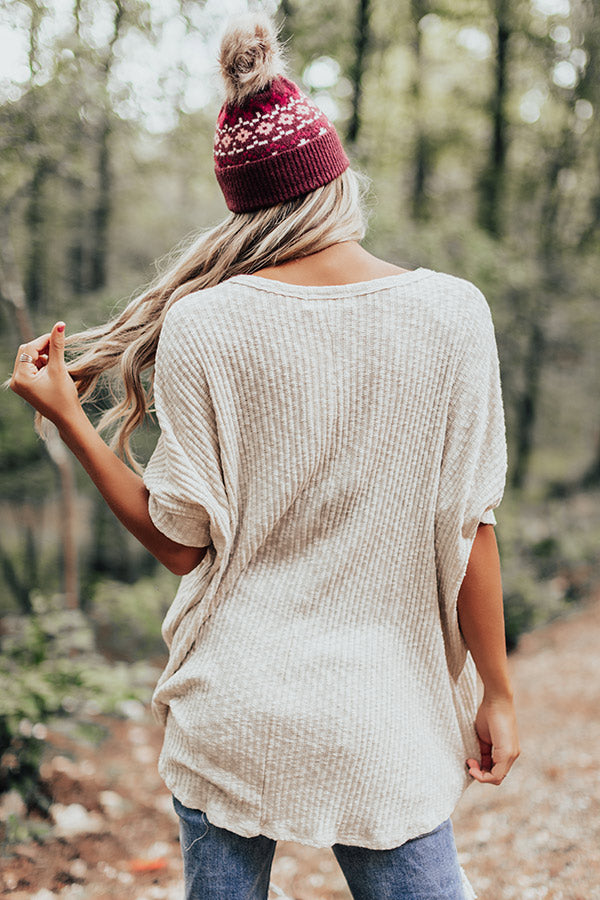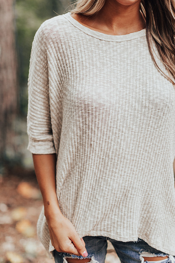 Spend a "weekend away" in style with this simple but significant neutral top featuring soft lightweight tight knit material, a wide rounded neckline that can be worn off one shoulder, short loose sleeves, and a draped silhouette that falls into a rounded tunic-length hemline! Measurements