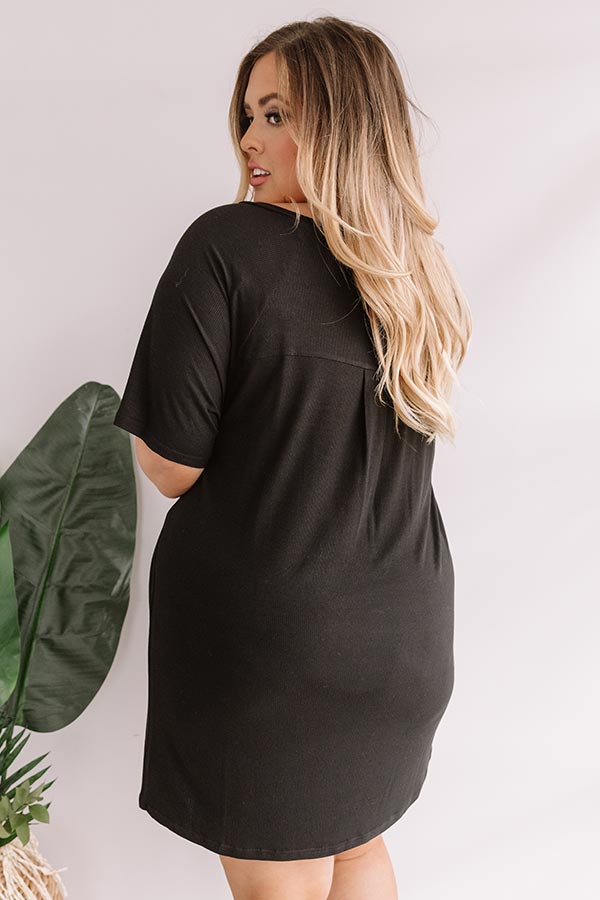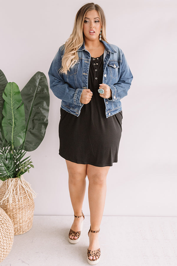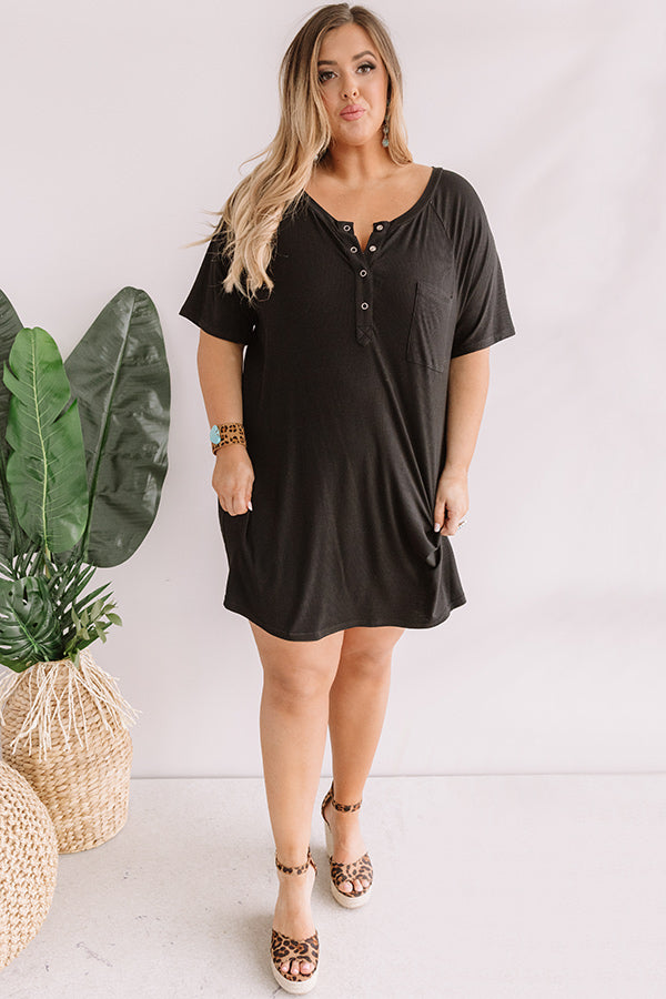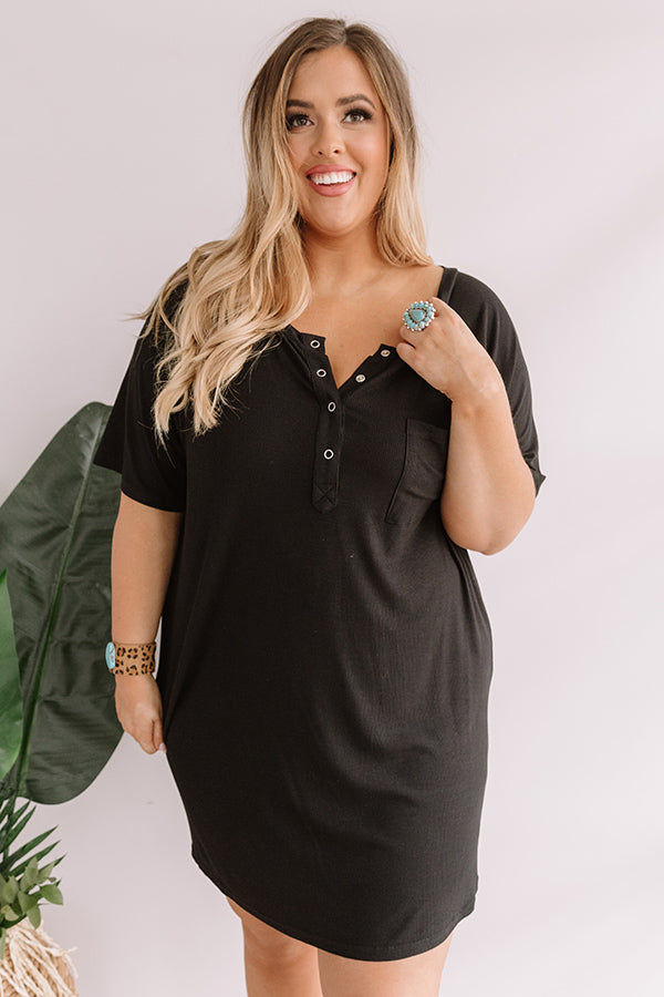 Plus Size - There is no better piece to wear on the weekend than this adorable black shift dress featuring soft lightweight cotton material with subtle ribbed texturing, a henley button up bodice with a rounded neckline, short loose sleeves, an accent chest pocket, and an ultra relaxed t-shirt silhouette that falls into a rounded mid-thigh length hemline! We have styled this causal cutie up by layering it under a denim jacket with leopard wedges and turquoise jewelry, but you can also dress it down with "The Karter Faux Suede Sneaker Birch," our "Plans In Paris Wool Hat inTaupe," and our "Swiss Alps Getaway Backpack in Birch!"