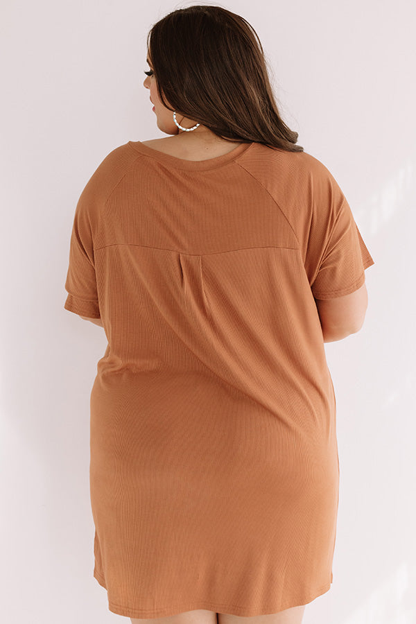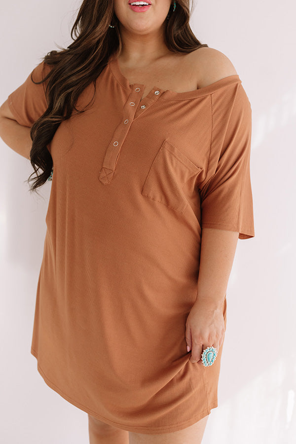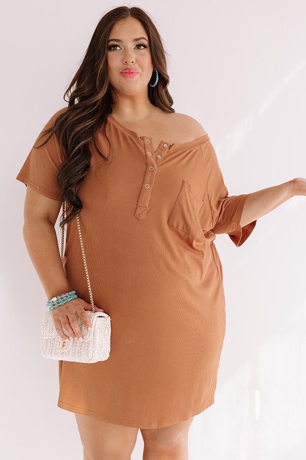 Weekend Bliss Henley Shift Dress In Camel Curves