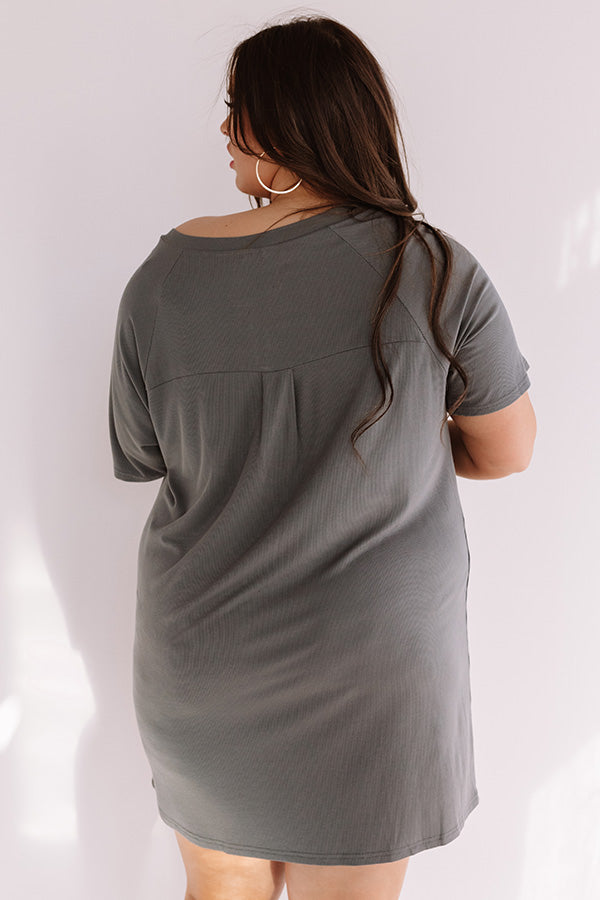 Weekend Bliss Henley Shift Dress In Charcoal Curves