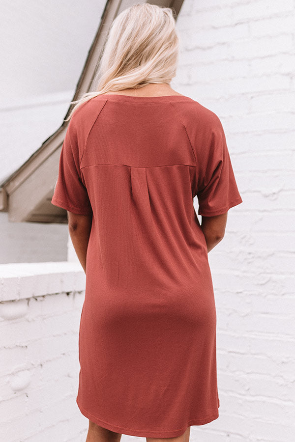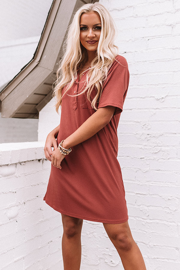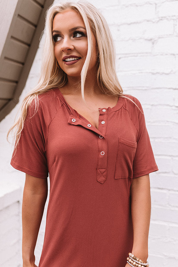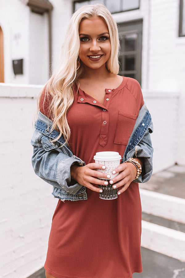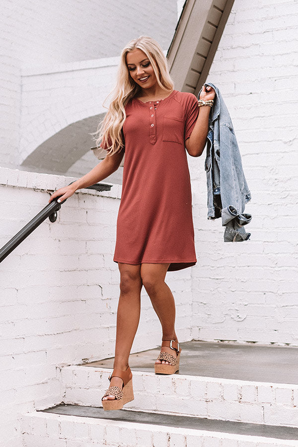 Weekend Bliss Henley Shift Dress in Dark Rust