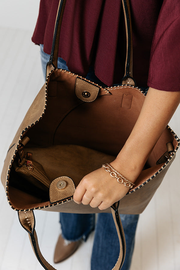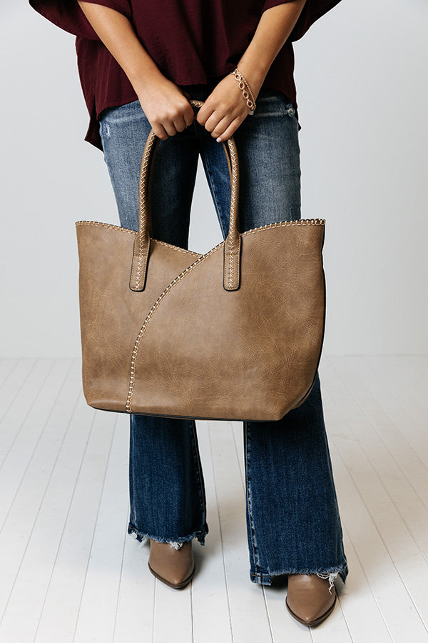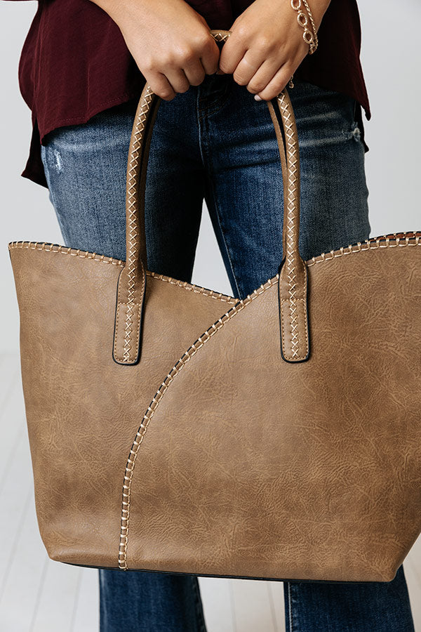 Weekend In NYC Faux Leather Tote In Dark Khaki