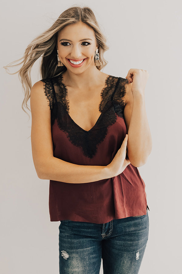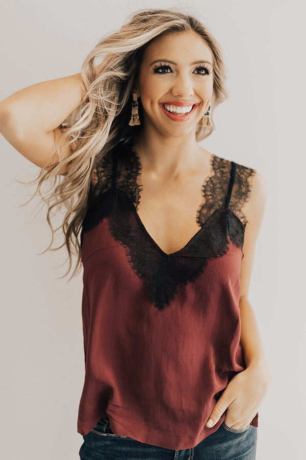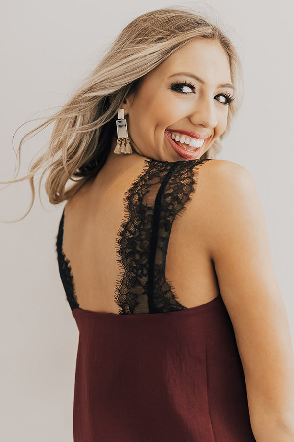 Weekend Luxe Lace Shift Tank in Merlot