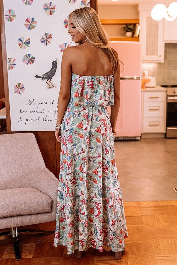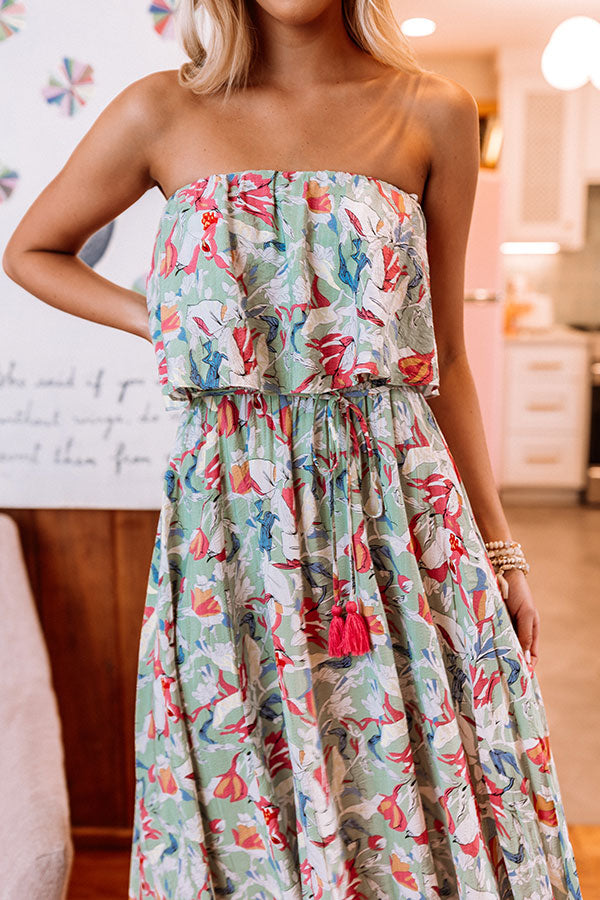 Spend your weekend in style with this stunning maxi dress featuring lightweight breezy material patterned with a hot pink, coral, mint, and blue floral print, a straight elastic strapless neckline with an overlay bodice, a cinched waistline with a tassel tie, and a relaxed skirt silhouette that falls into a straight floor-length hemline!