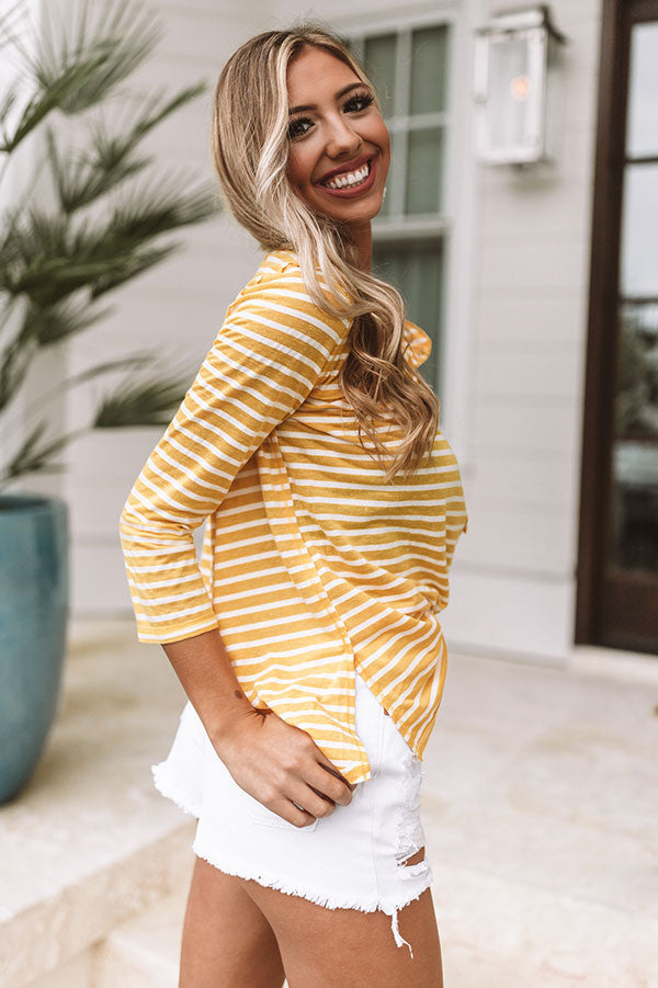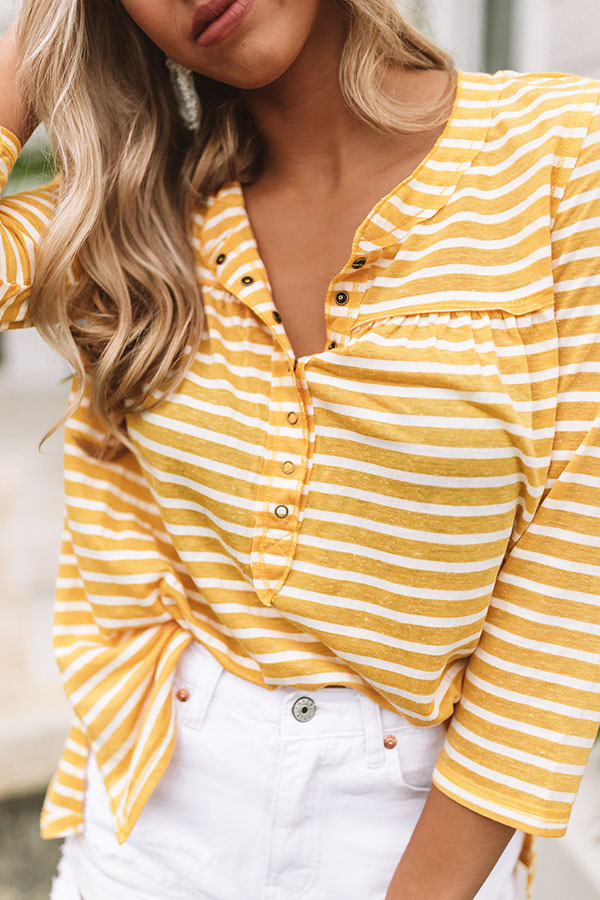 This stripe long sleeve top is ready for whatever weekend plans come your way! With fitted long sleeves, a relaxed fit bodice, side slits & a button down v-cut neckline this top is sassy & simple!