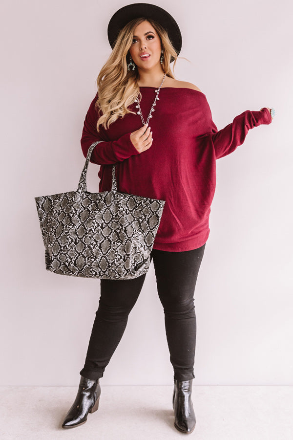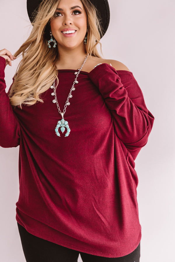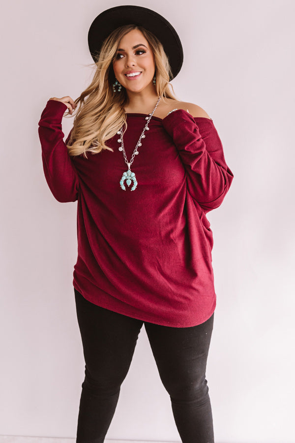 Plus Size - When getting ready for your "weekend WINE down," you won't find a more comfortable piece to relax in than this wine colored shift top featuring soft lightweight tight knit material with heathered detailing, a high straight neckline that can be worn off one shoulder, long semi-loose sleeves, and a relaxed silhouette that falls into a rounded hemline! You can effortlessly style this transitional piece a variety of ways, like with some ankle skinnies, a snake print tote, and black bootie and faux suede hat, but you can also wear it with some denim flares and "The Seraphina Faux Leather Wedge in Brown!" Measurements