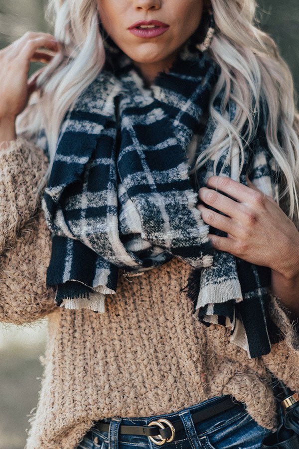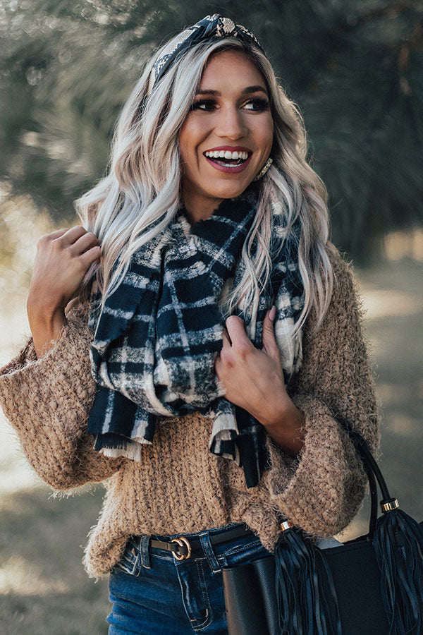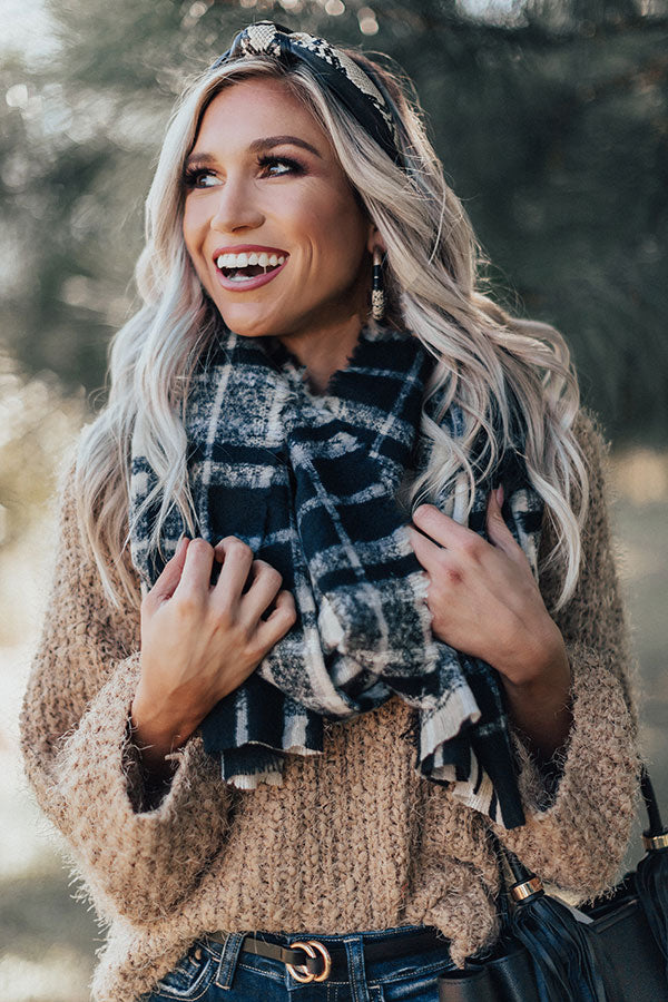Add a little extra warmth and style to your fall OOTD with our "Well And Good" scarf featuring soft fuzzy material, an black and white plaid pattern, and fringed edge detailing!